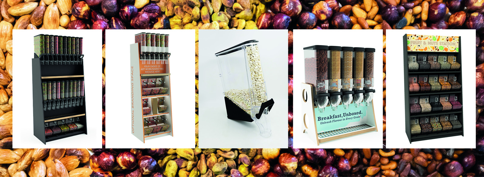 Explore our Pick n Mix Displays, Nut Refill Stands , Cereal Dispensing Stations, and other Refill Solutions to enhance your offering today!
